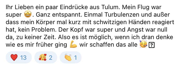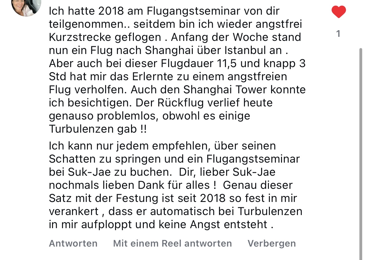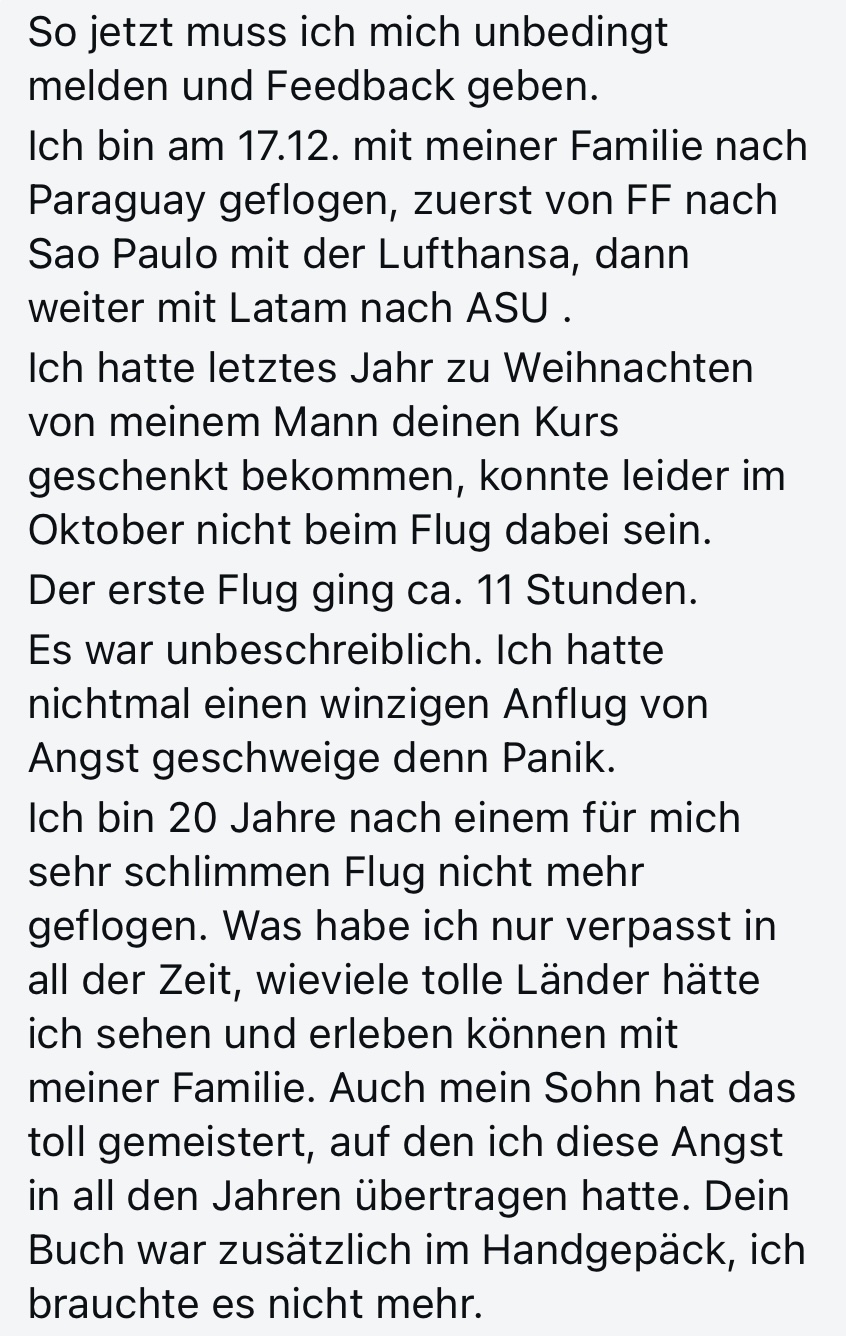 Mein Flugangstseminar wird auch Dir dabei helfen, nach ca. 4-6 Wochen (wieder) entspannt zu fliegen.