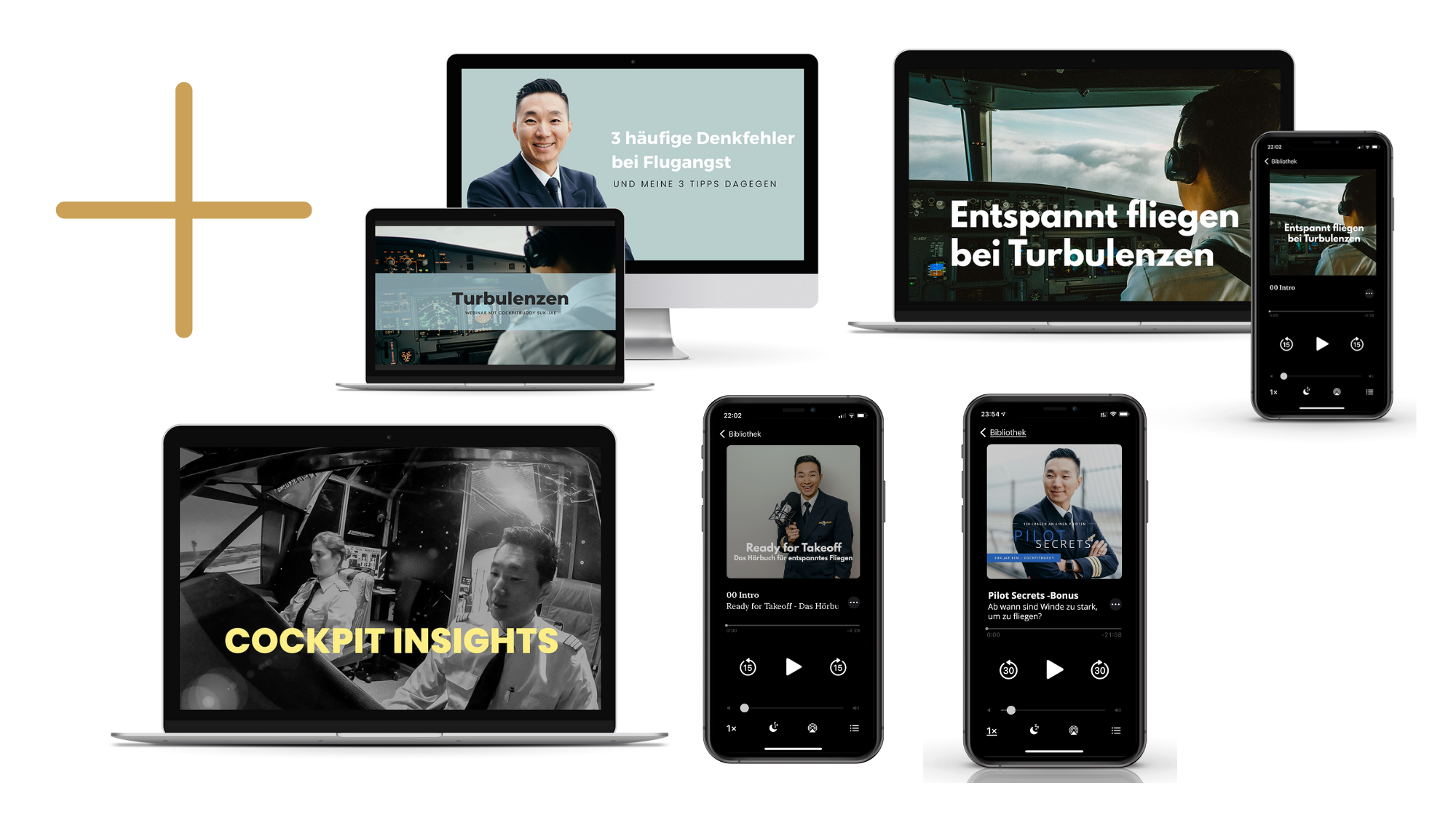 Mit dem Takeoff Bundle erhältst du Zugang zu all meinen Webinaren, Online-Kursen und Hörbüchern – alles, was Du brauchst, um Deinen nächsten Flug entspannt zu meistern.