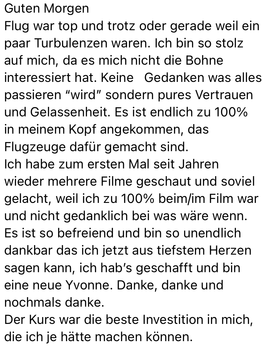 Mein Live Seminar ist begleitet dich Schritt für Schritt von Unsicherheit und Panik hin zu Gelassenheit, Verständnis und innerer Stabilität beim Fliegen.