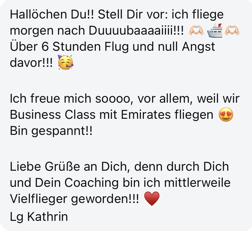 🎉 Du traust dich wieder, den Job anzunehmen, der Flüge erfordert. Nicht die Angst entscheidet - sondern du.