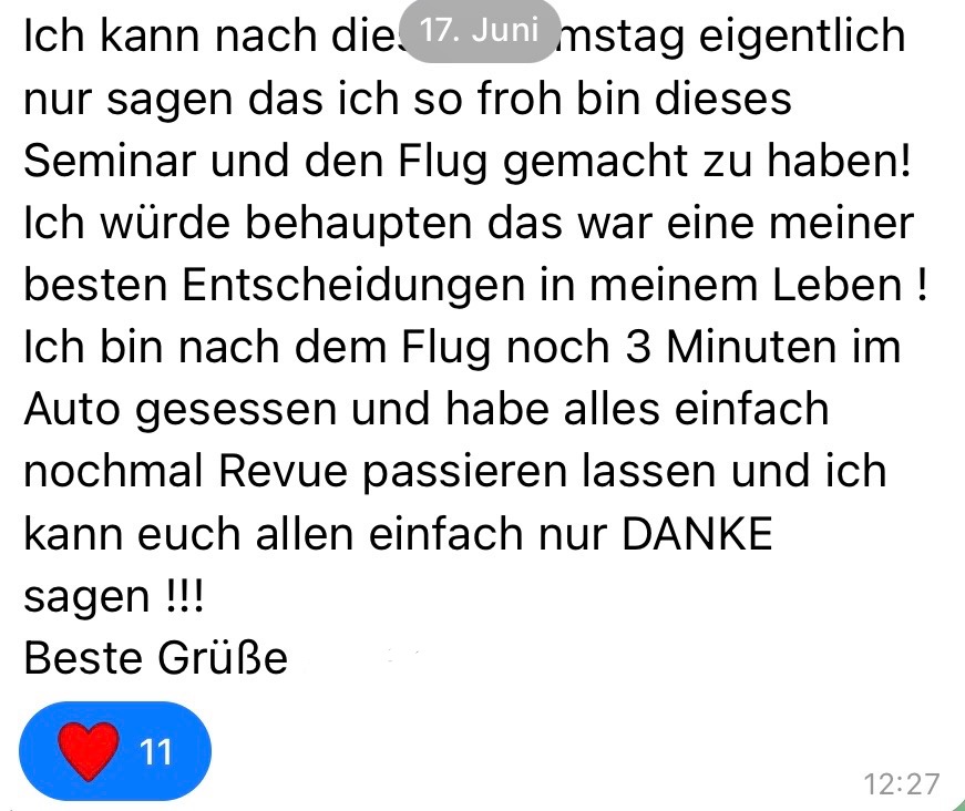 Ja, definitiv. Ich habe schon viele Teilnehmer und Teilnehmerinnen, die das Seminar über die Aufzeichnung gemacht haben, beim Gruppenflug wiedergetroffen, die jetzt durch die Welt fliegen und ihre Reiseträume wahr werden lassen.